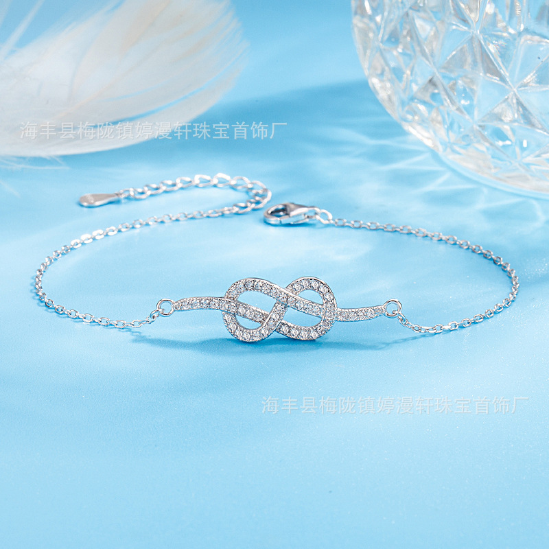 新款S925纯银欧美跨境个性气质高级感镶钻交织8字手链小众礼物
