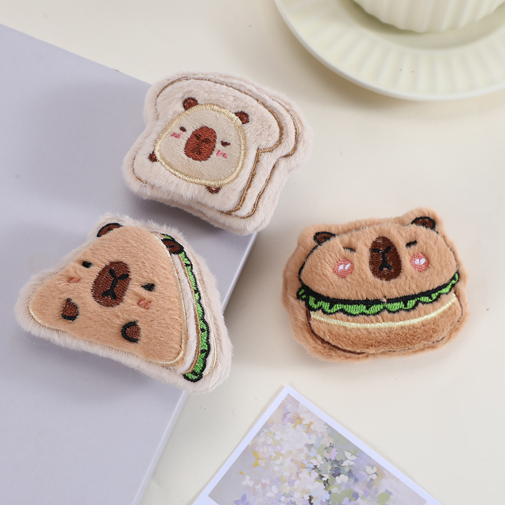 卡通毛绒汉堡卡皮巴拉玩偶吱吱叫挂件钥匙扣胸针服装饰品辅料diy