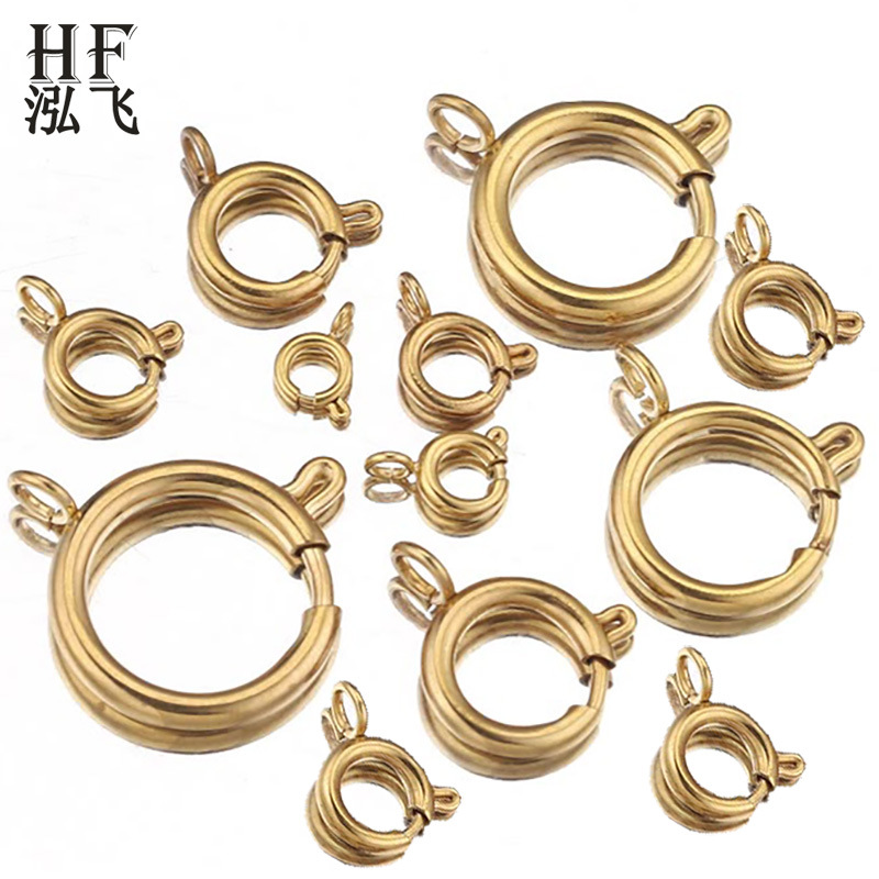 316L不锈钢圆形弹簧扣手链扣项链扣镀18K金连接扣DIY饰品扣配件