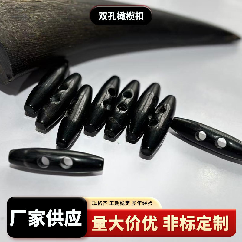 双孔橄榄扣黑牛角纽扣中式服装装饰扣大衣风衣毛衣羽绒服衬衫扣子