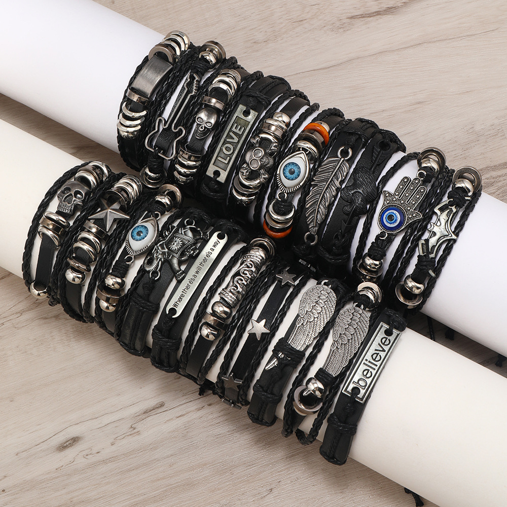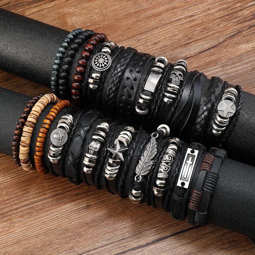 多件套合金配饰手工编织diy手绳 跨境男士简约街头流行皮革手链
