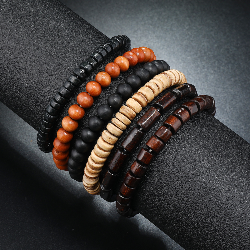 亚马逊跨境串珠多层木珠手串不规则珠子椰壳六条手链套装厂家