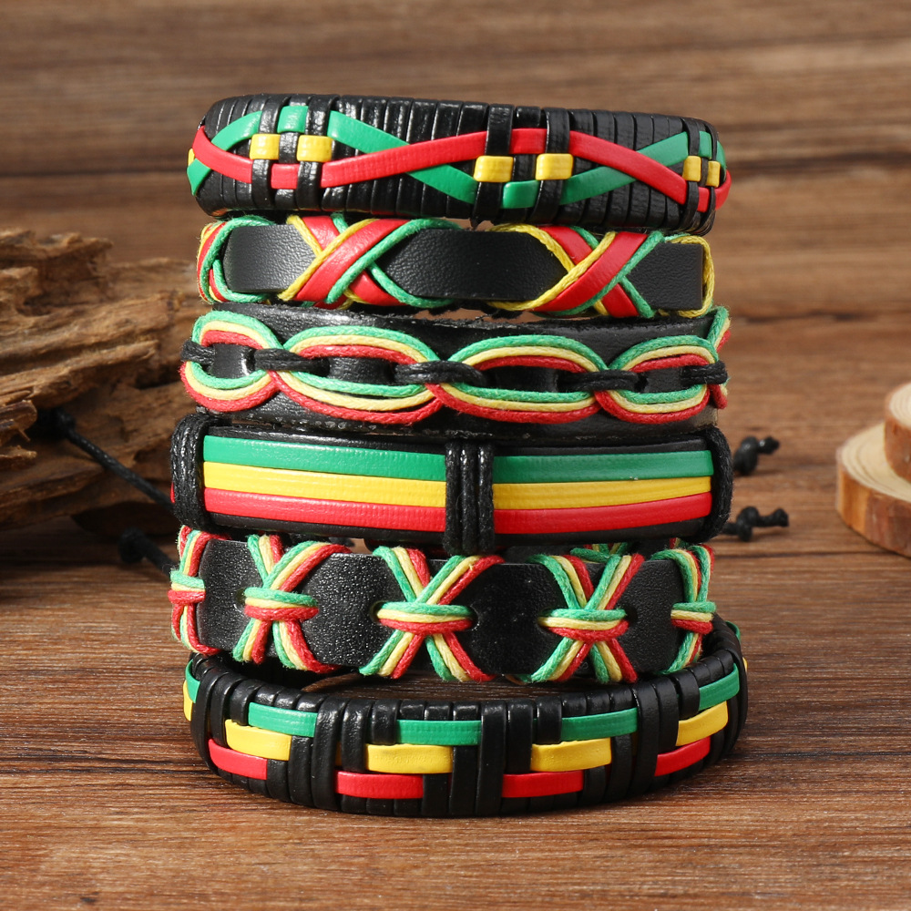 跨境电商热销休闲运动风撞色皮革编织手绳 亚马逊diy男士手链套装
