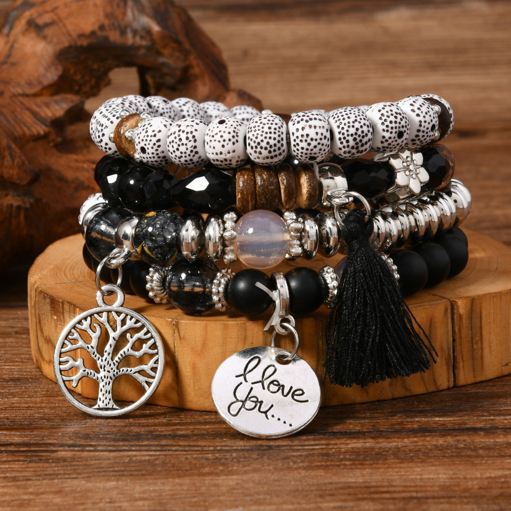 新款波西米亚手链创意女士首饰流苏水晶珠多层串珠手环时尚首饰