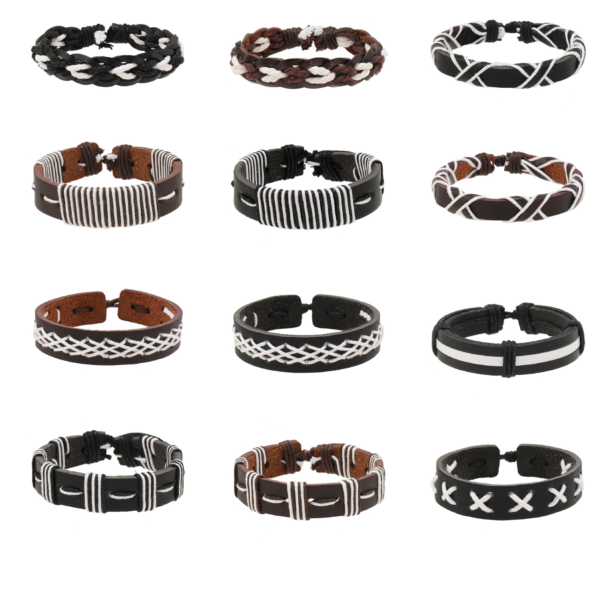 欧美跨境饰品热销潮流个性男士手饰真牛皮编织手链多根厂家直销