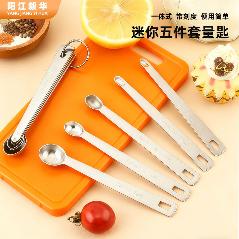 不锈钢迷你量匙五件套组合调味勺5件套厨房烘培量匙刻度量勺套装