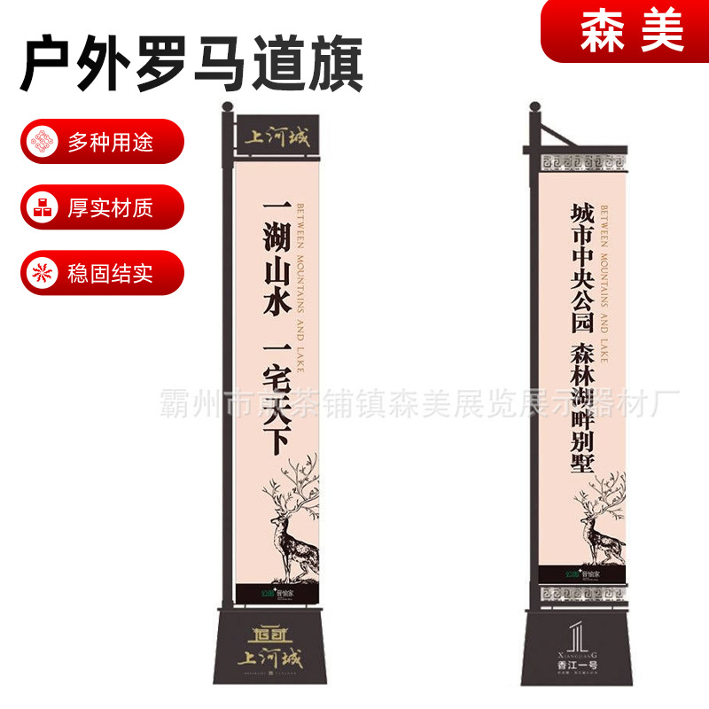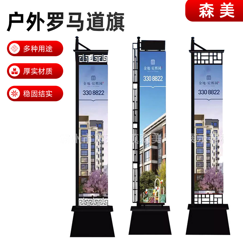 注沙铁质道旗户外售楼部双面4米5米6米罗马刀旗中式楼盘铁质灯杆