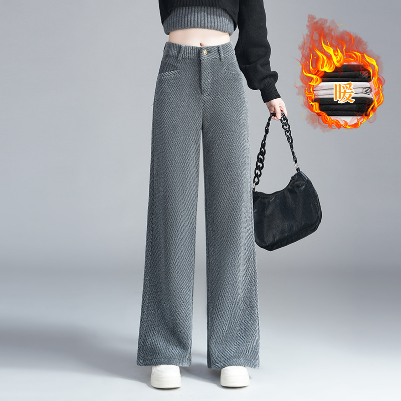 雪尼尔条纹阔腿休闲裤女秋冬新款加绒宽松百搭加厚直筒裤