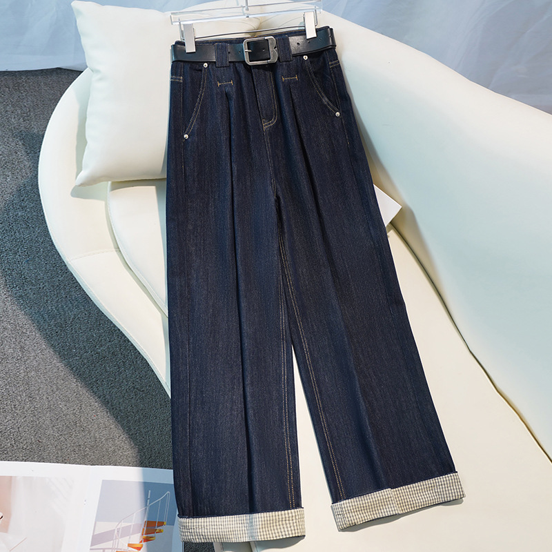25年春款直筒窄版阔腿牛仔女裤高腰修身时尚百搭牛仔裤