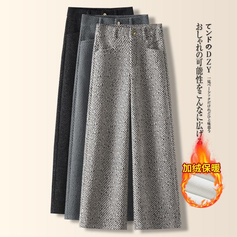 24年秋冬宽版条纹阔腿裤日韩风高腰修身休闲百搭加绒加厚直筒裤