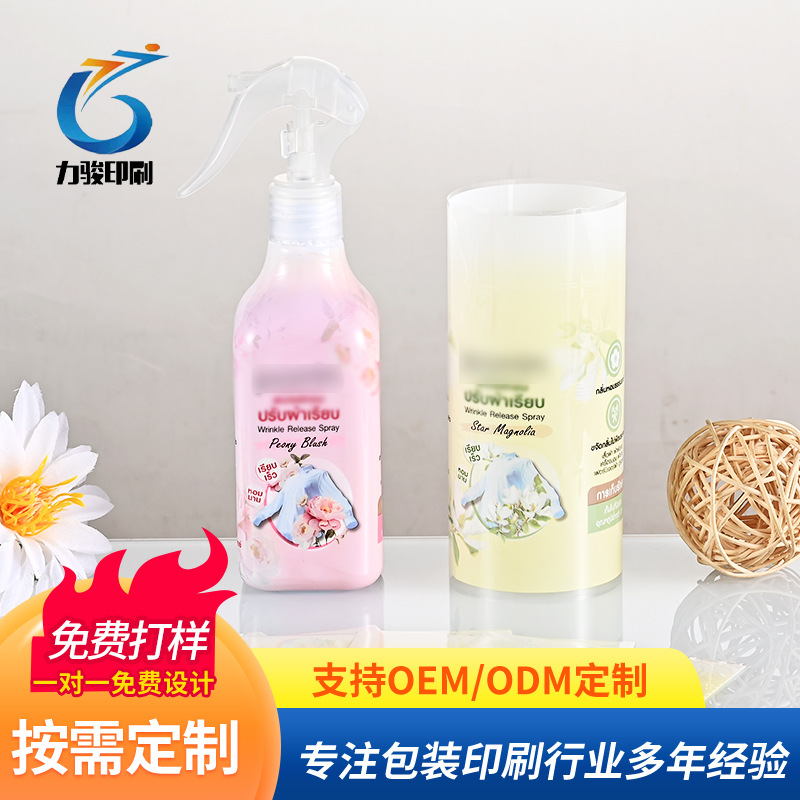 厂家热推定制彩印热收缩膜标签 pet清洁剂瓶喷雾瓶身膜