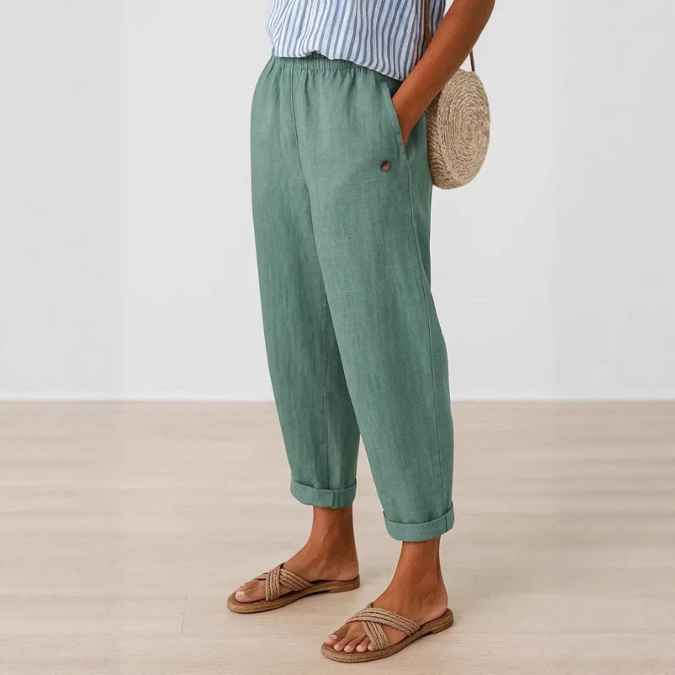 圣淼独立站2025跨境新款女装亚马逊欧美夏季数码3D印花扣子休闲裤
