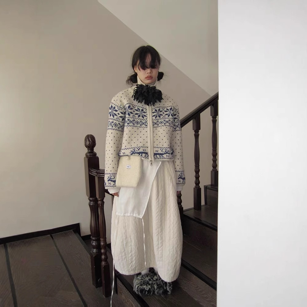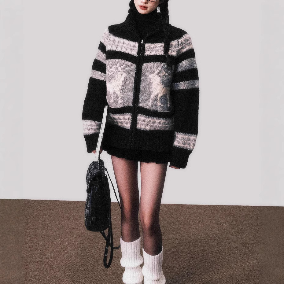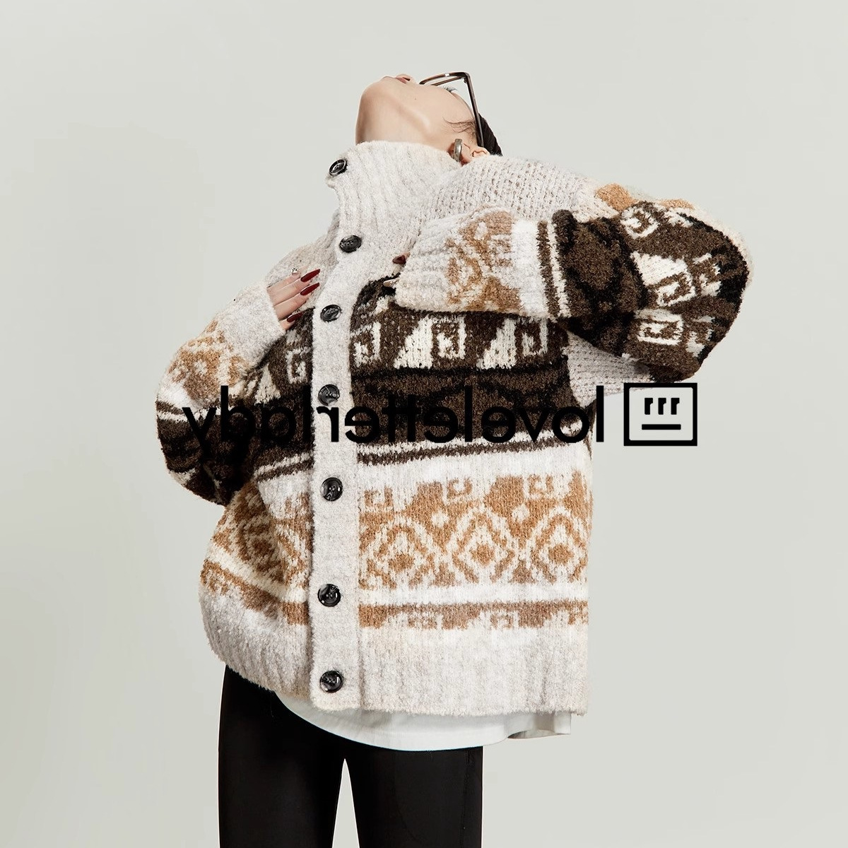 24AW 重磅羊毛费尔岛毛衣外套女秋冬北欧复古慵懒开衫
