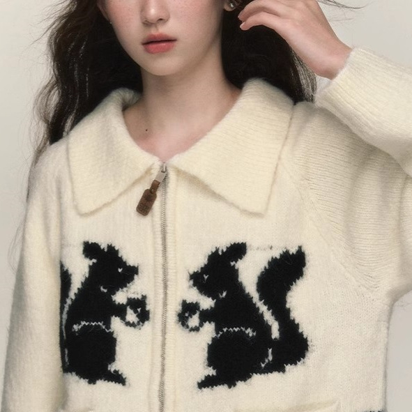 chummy 原创日系松鼠软糯拉链翻领长袖针织慵懒色纺羊驼毛衣外套