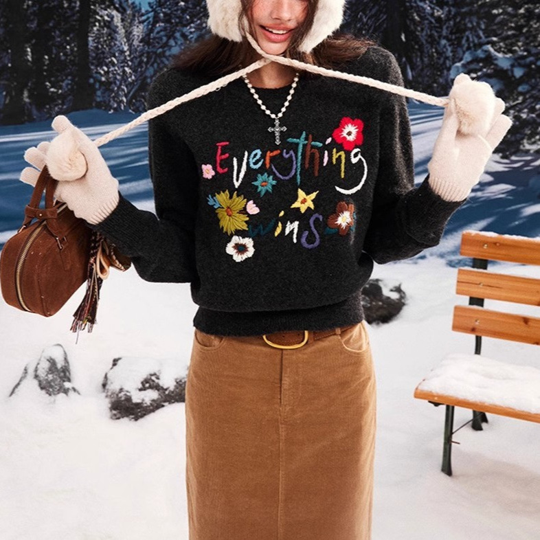 2024年冬新款万事胜意手工刺绣毛衣BC胜利花针织衫