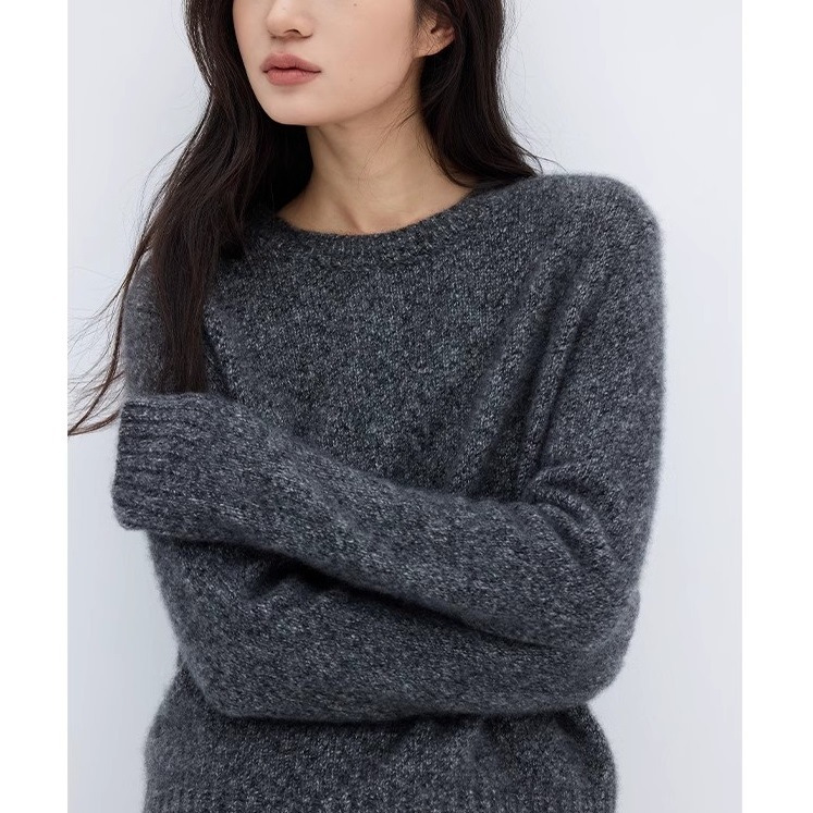 3股加厚康宝莱amara丝羊绒混色ab纱極简圆领针织衫女