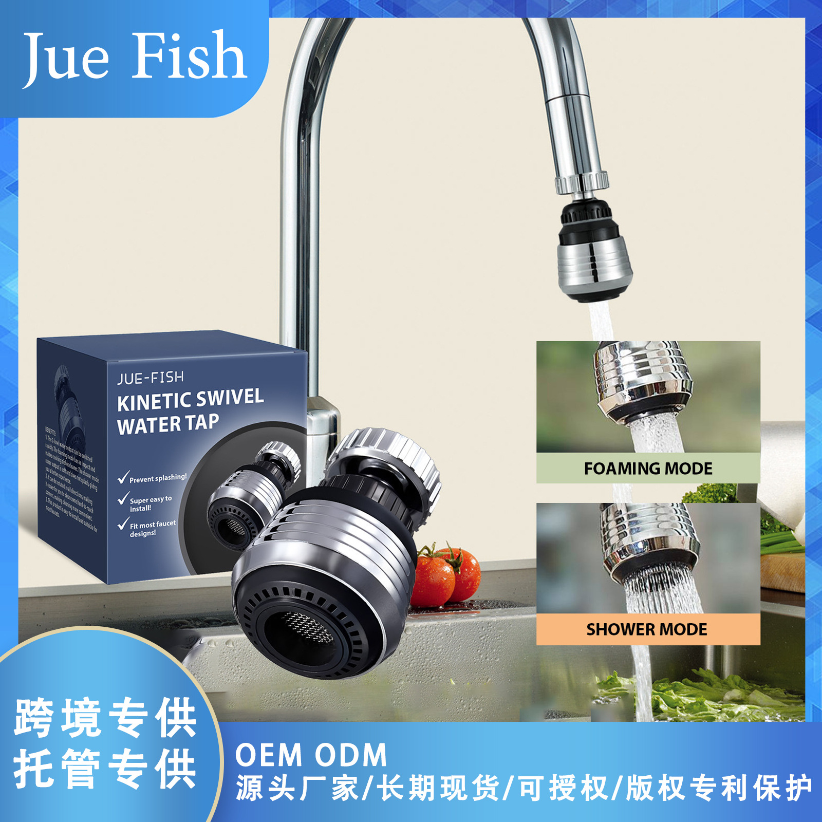 Jue-Fish 增压花洒 家居厨房水嘴防溅头万向旋转增压不锈钢花洒