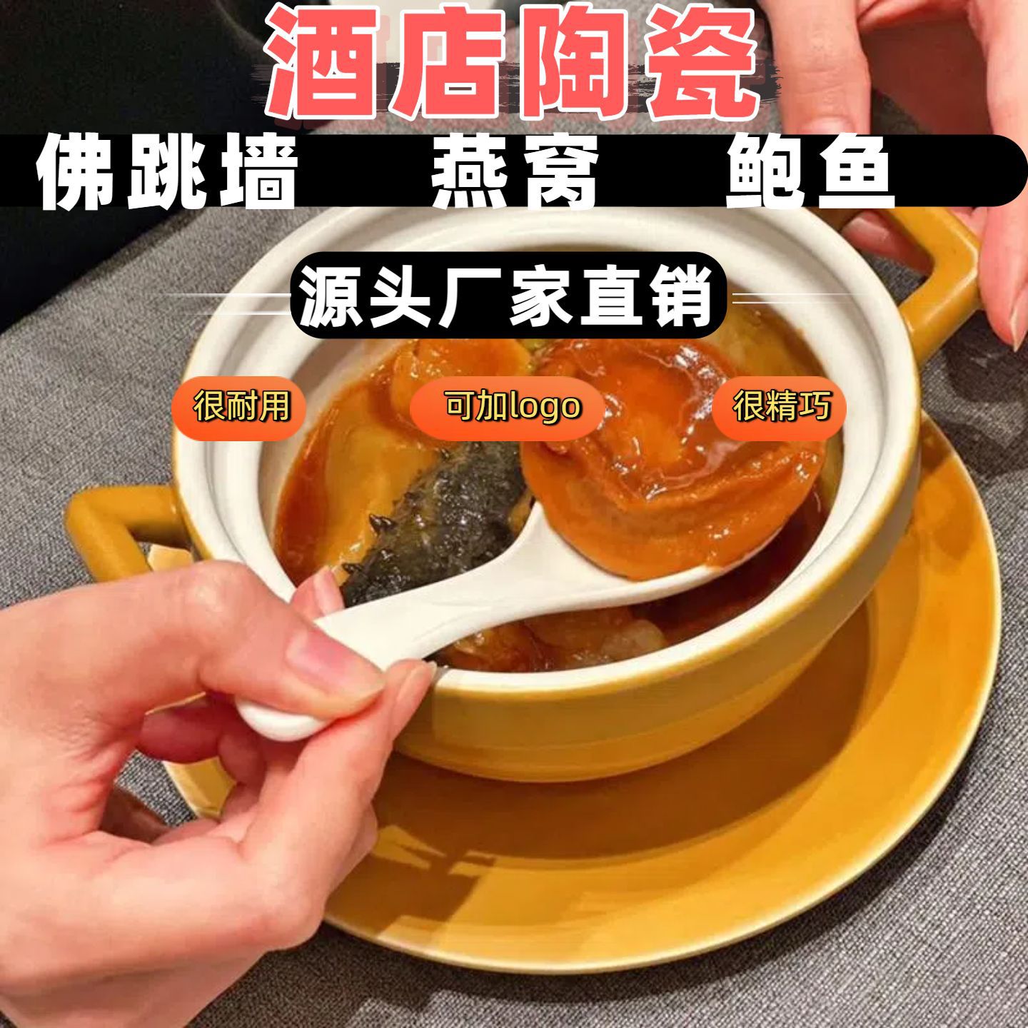 酒店陶瓷佛跳墙带盖炖盅双耳鲍鱼蒸蛋碗盘碟聚餐甜品燕窝汤盅