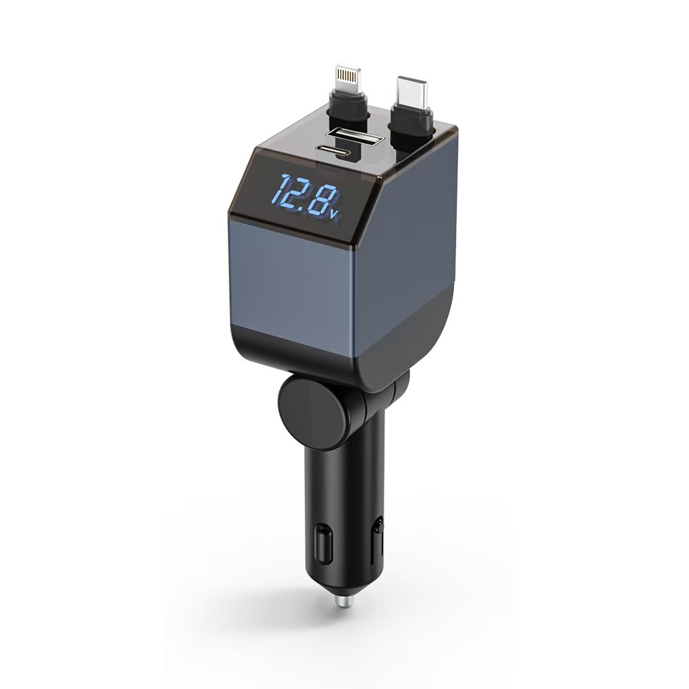 新款数显折叠伸缩线车载充电器超级快充电器超级快充车载点烟器
