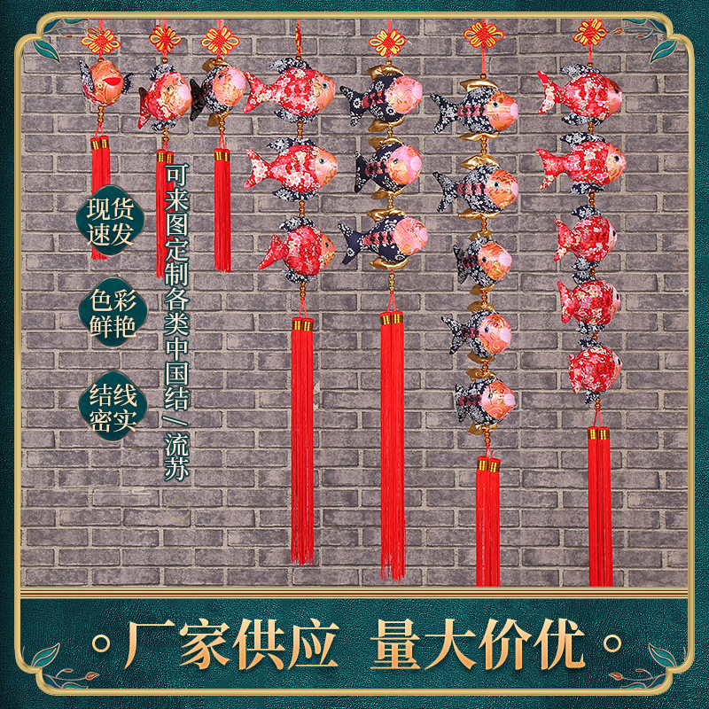 新年鱼挂件喜庆中国结客厅挂饰五连串商场春节装饰流苏鱼挂件批发