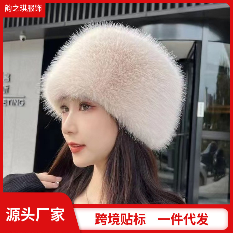 2025新款蒙古帽子女仿乌苏里貉户外防风保暖盆帽显脸小毛毛绒帽子