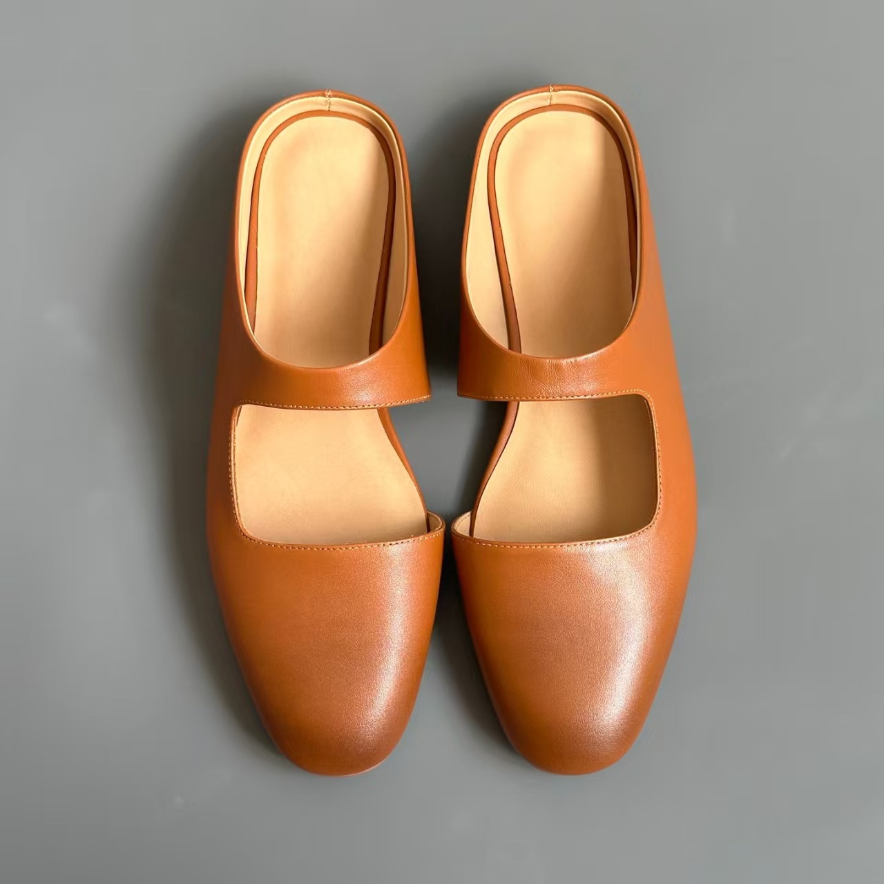 牛皮版平底穆勒拖~小众设计感包头半拖鞋女夏季新款懒人平底凉拖