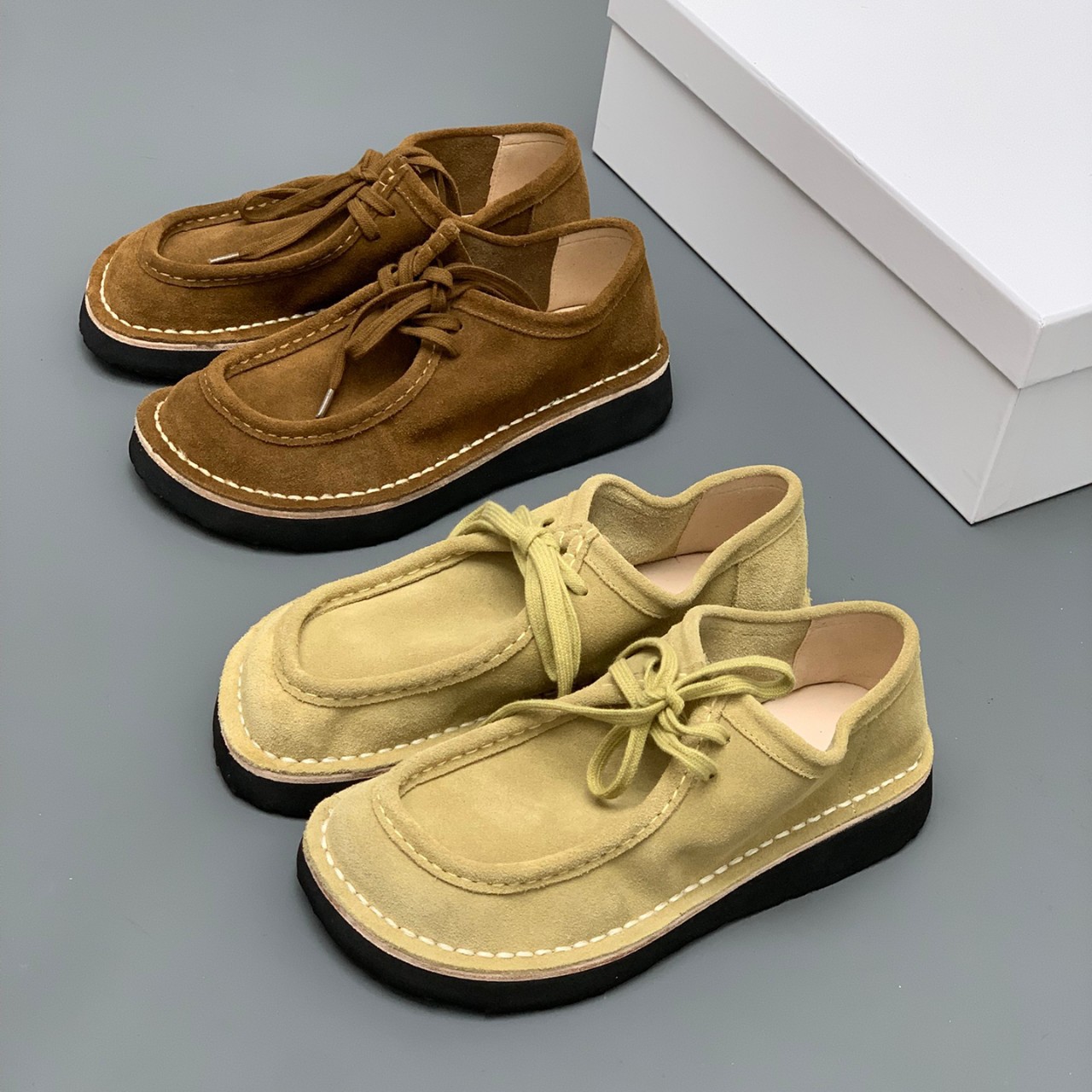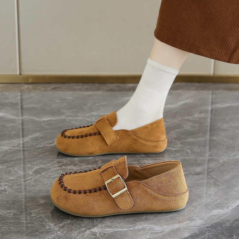 牛反绒平底鞋~小众新款休闲厚底懒人鞋女软皮超舒适轻系带乐福鞋
