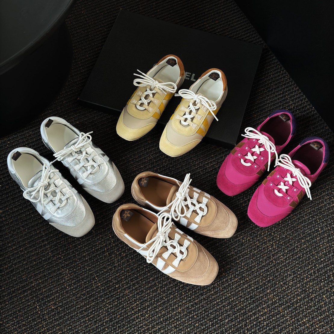 牛皮/羊皮平底拼色时尚休闲鞋~百搭休闲鞋复古平底芭蕾德训鞋