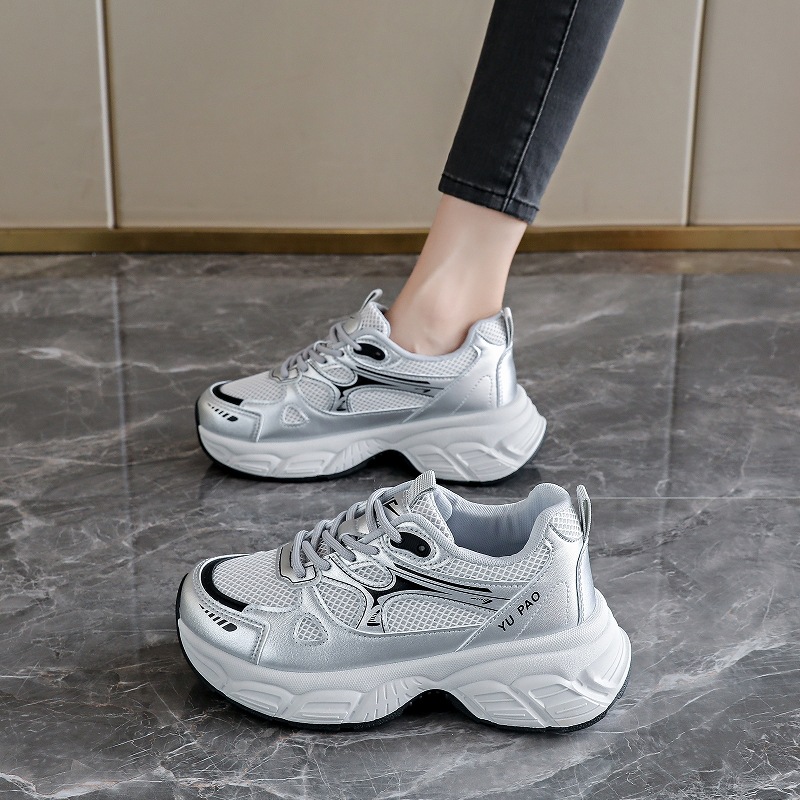 网面运动鞋秋季网鞋女透气薄款2025新款厚底老爹鞋学生增高小白鞋