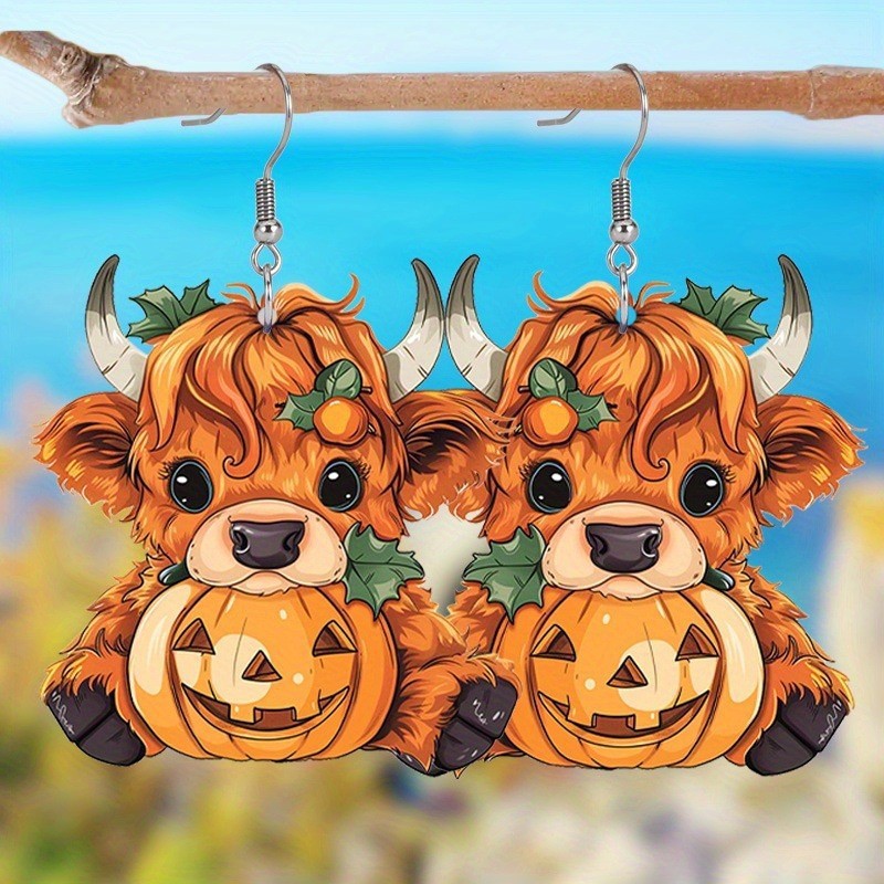 跨境新款万圣节滑稽牛斜耳环时尚卡通风格适合女性亚克力装饰