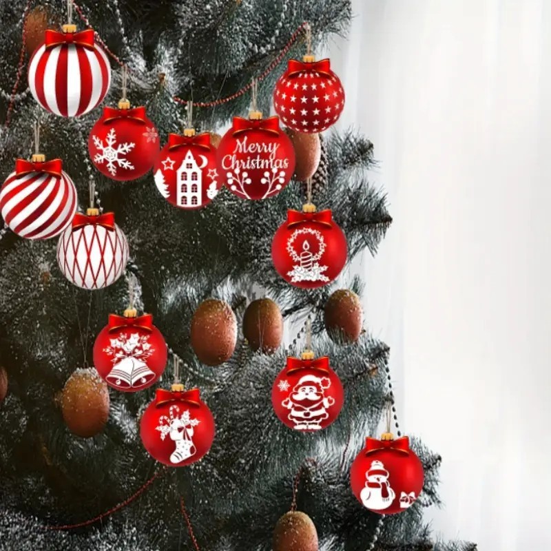 跨境新款创意圣诞球木质挂件套装圣诞树装饰家居派对布置用品装饰