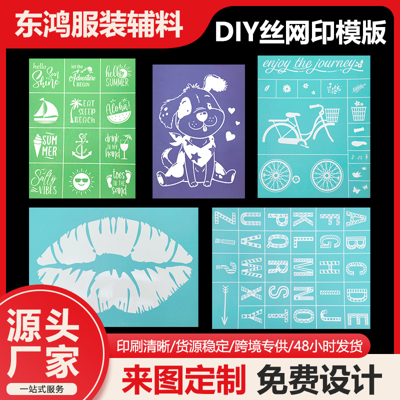 DIY丝印模板粘性丝网印模板创意模板可清洗镂空多图案绘画模板