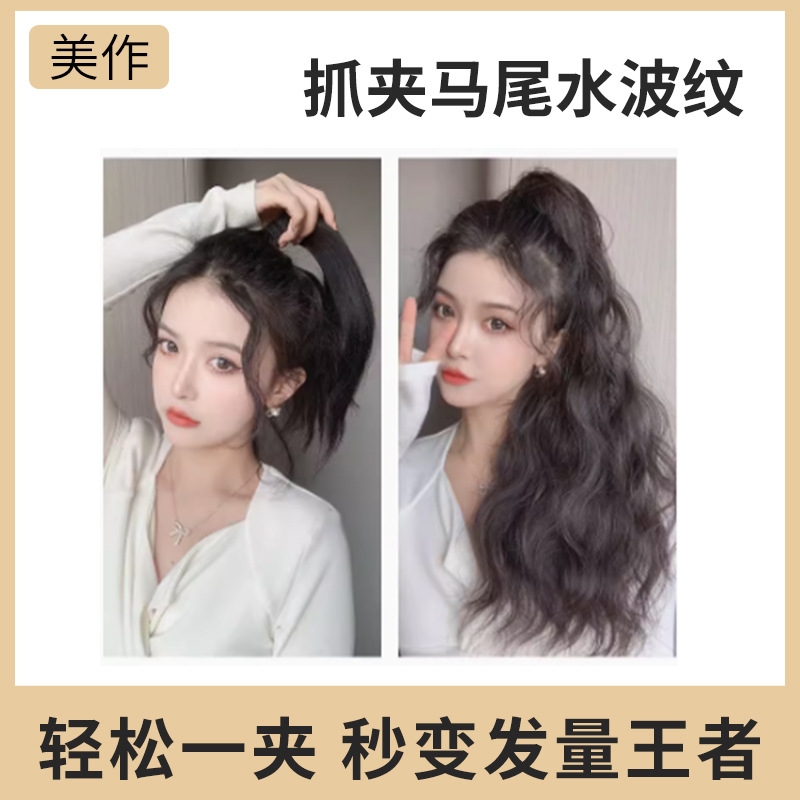 水波纹马尾假发 夏季抓夹式绑带自然微卷假发网红高马尾假发批发