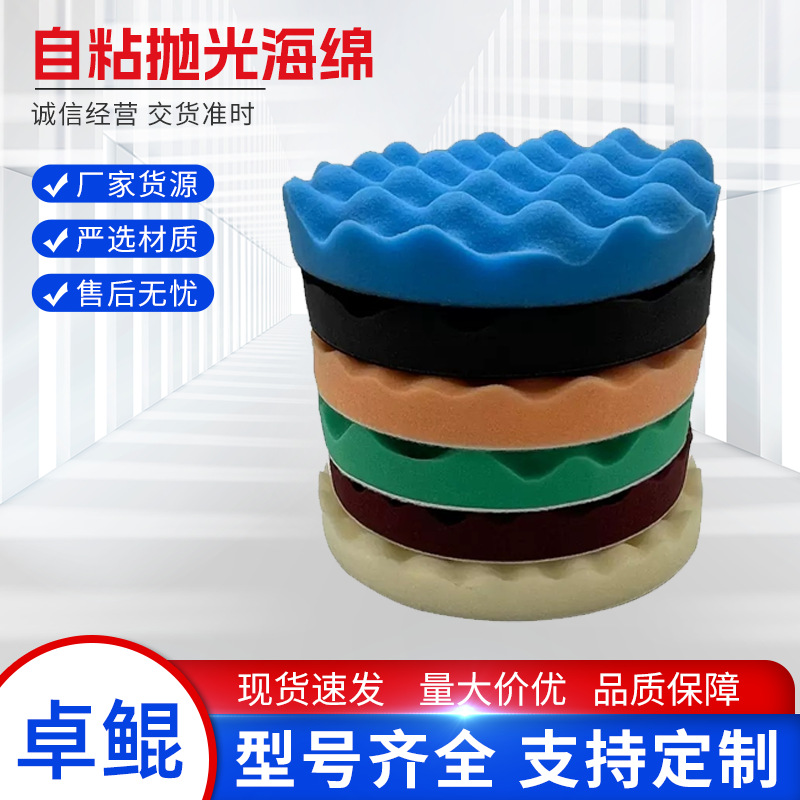 自粘抛光海绵波浪打蜡盘6寸7寸汽车美容抛光盘批发波浪纹设计