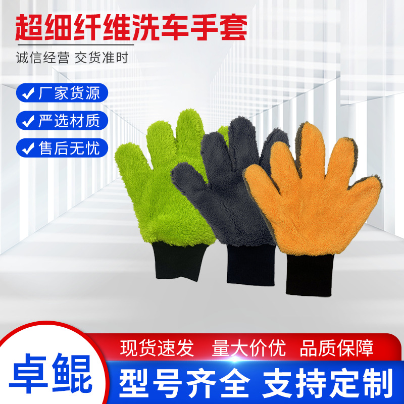 超细纤维洗车手套汽车美容双面五指洗车手套加厚毛绒刷车打泡清洁