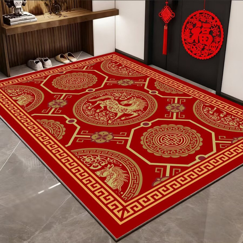 跨境马年新年红色地垫喜庆入户玄关耐磨耐脏大门口进门防滑脚踩垫