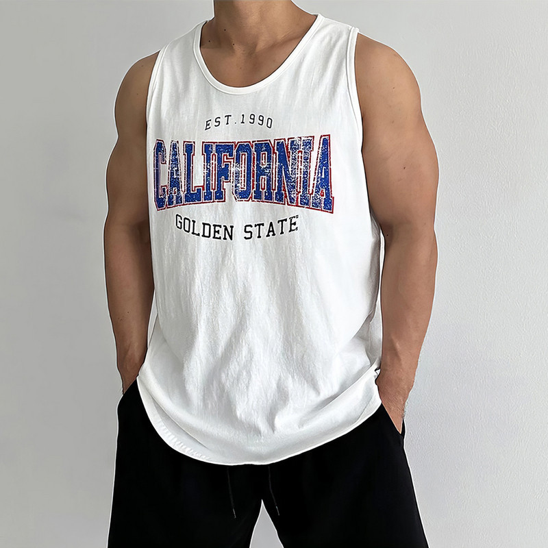 美式字母印花无袖背心男士夏季圆领宽松运动健身坎肩潮牌外穿汗衫