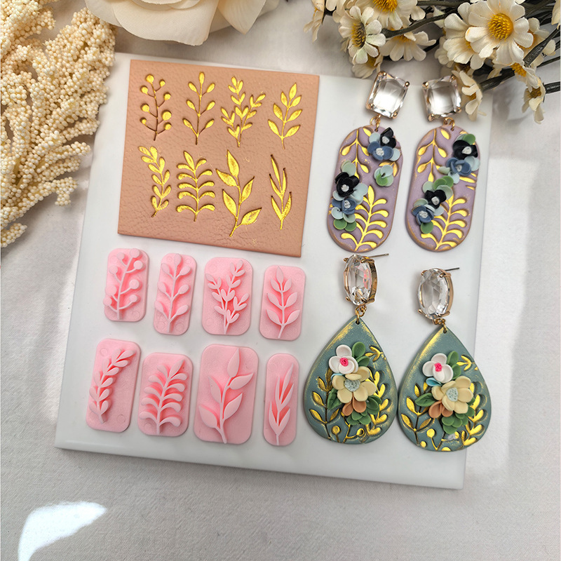跨境8件套按压树叶印章软陶粘土模具切模高精度手工耳饰DIY制作