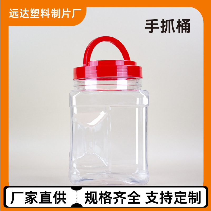 现货批发500ml手抓桶方形塑料瓶家用广口瓶透明密封包装瓶储物罐