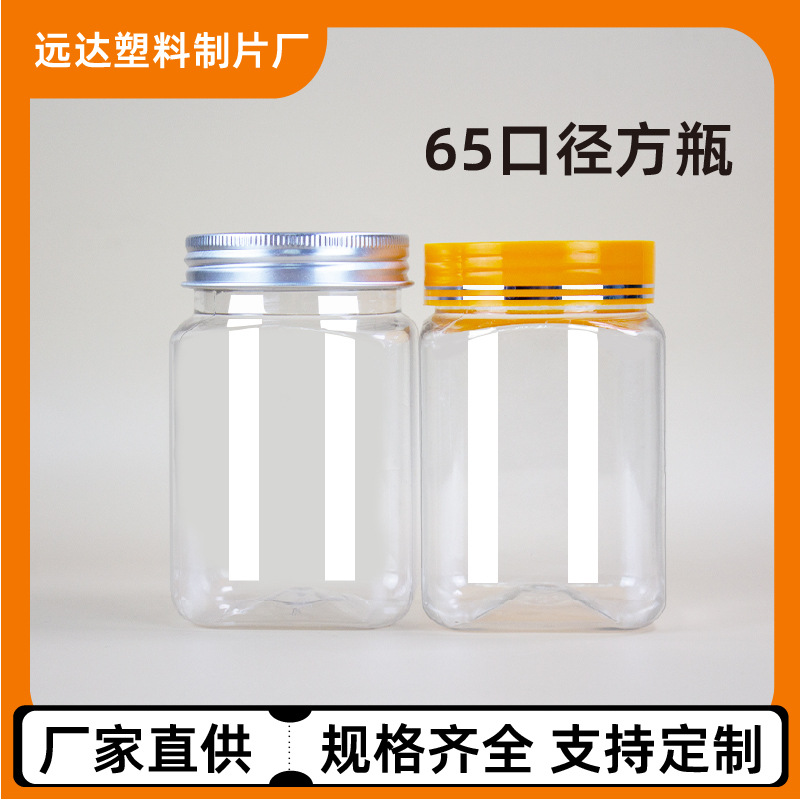 现货批发加厚方形瓶pet塑料瓶透明密封罐家用塑料罐厨房储物罐子
