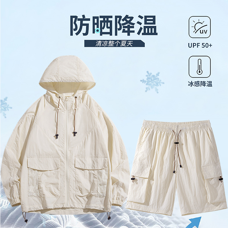 夏防晒衣女冰丝防晒服男情侣防紫外线冰感户外皮肤衣短裤套装