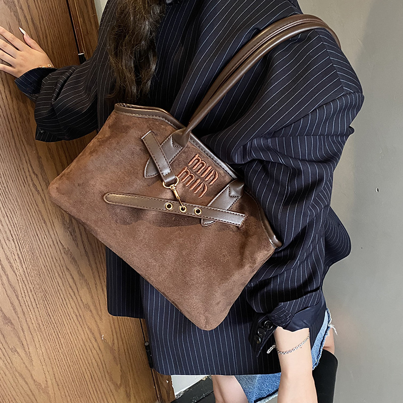 秋冬季复古大容量包包女2025新款时尚通勤单肩包慵懒风磨砂托特包