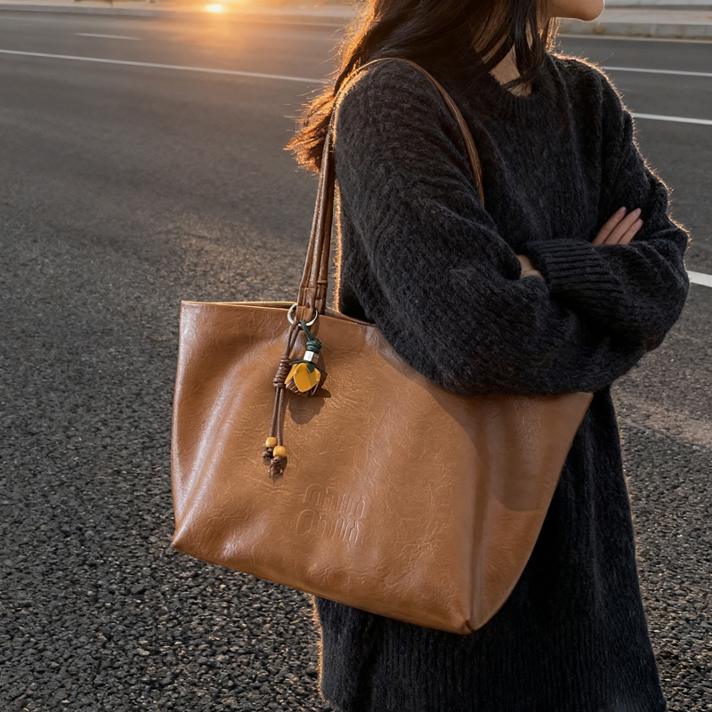 跨境秋季复古大容量通勤托特包新款时尚休闲通勤手提包小众潮流单