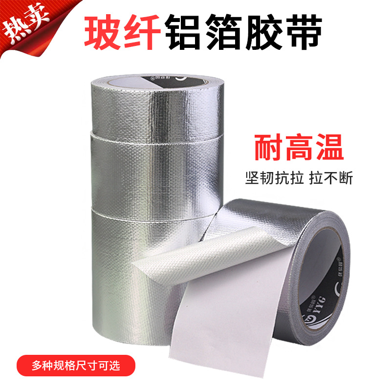 加厚耐高温铝箔胶带补锅贴油烟机灶台热水器管道包扎密封玻纤铝箔
