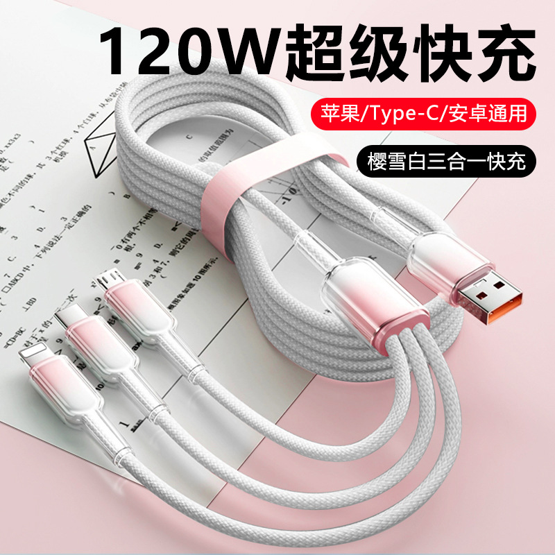 机客一拖三数据线120W超级快充适用于苹果华为安卓三合一充电线