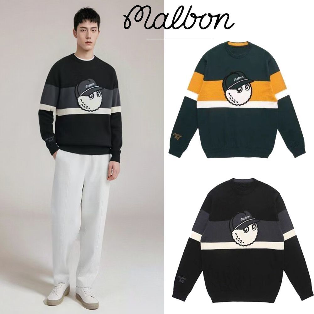 秋冬韩国MALBON高尔夫服装男款保暖圆领长袖时尚百搭休闲针织衫