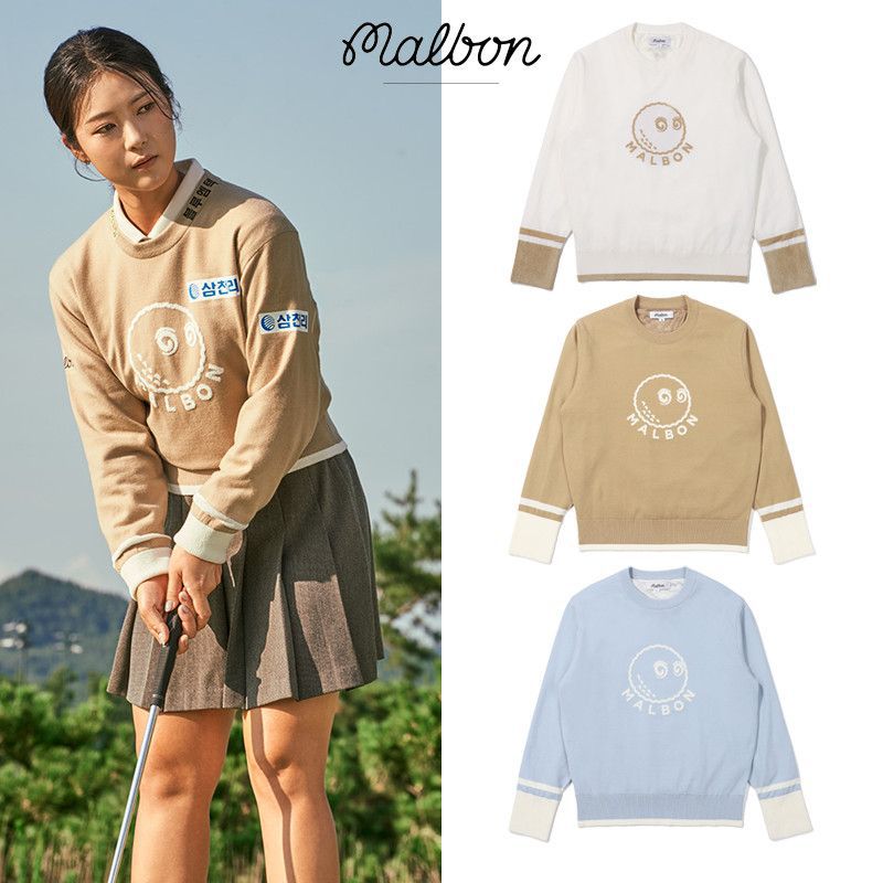 韩国malbon高尔夫女士服装新款秋冬休闲针织衫圆领长袖