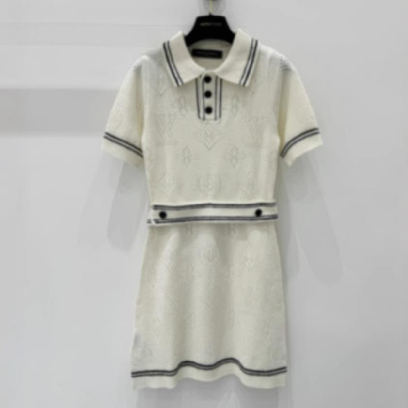 深圳南油高定秋季新款l家经典老花字母镂空polo领针织短袖连衣裙