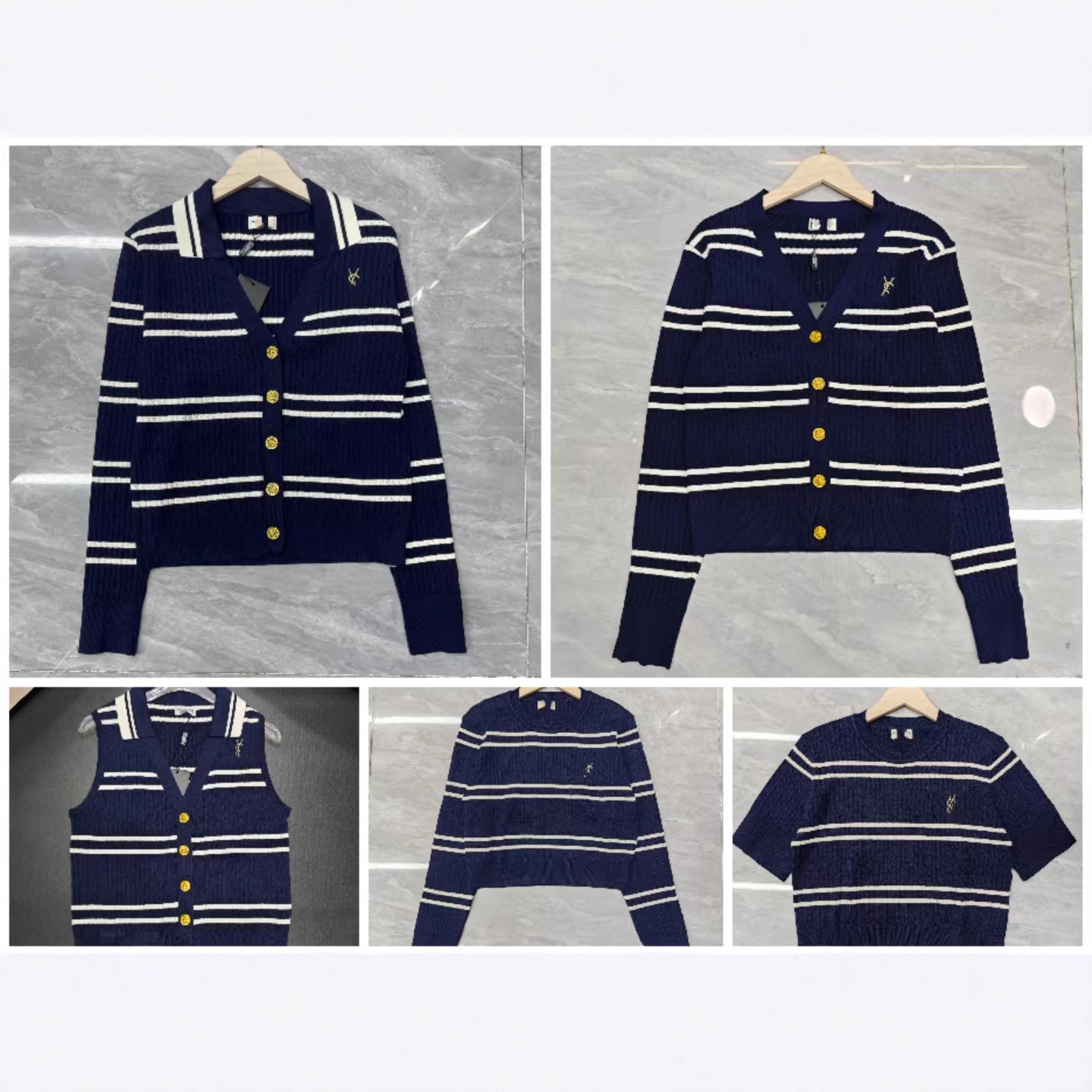 高版本Y家25早秋新款字母刺绣条纹撞色POLO领长袖针织衫长短款