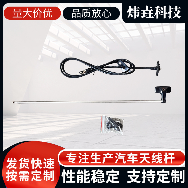 源头厂家多种车用信号接收天线 收音机连接线黑色+长杆螺纹天线